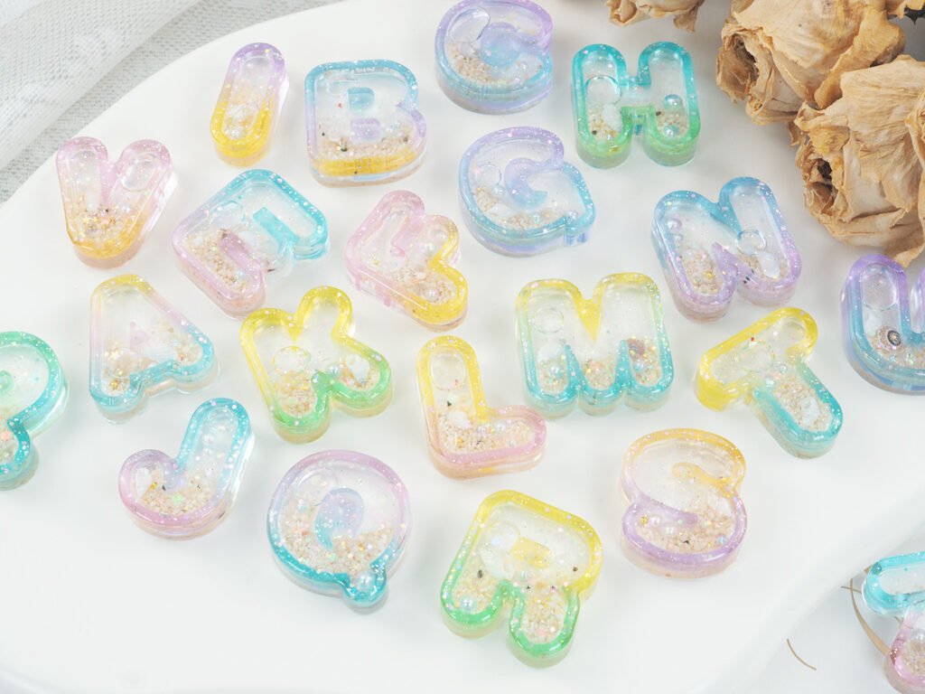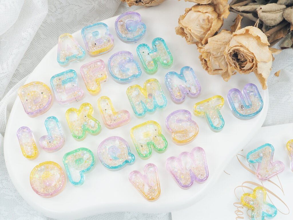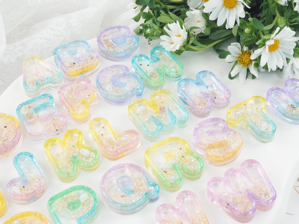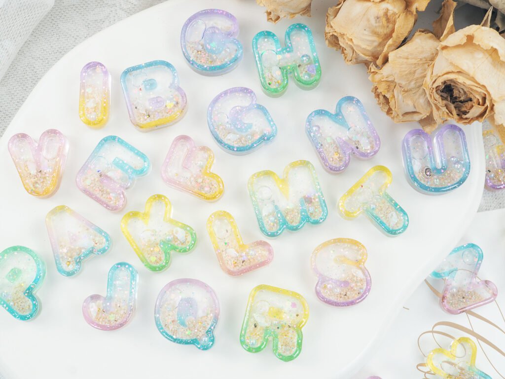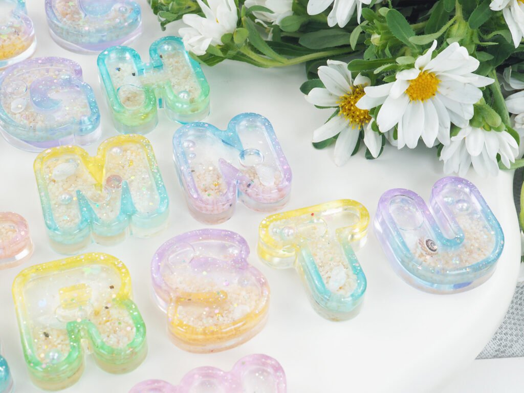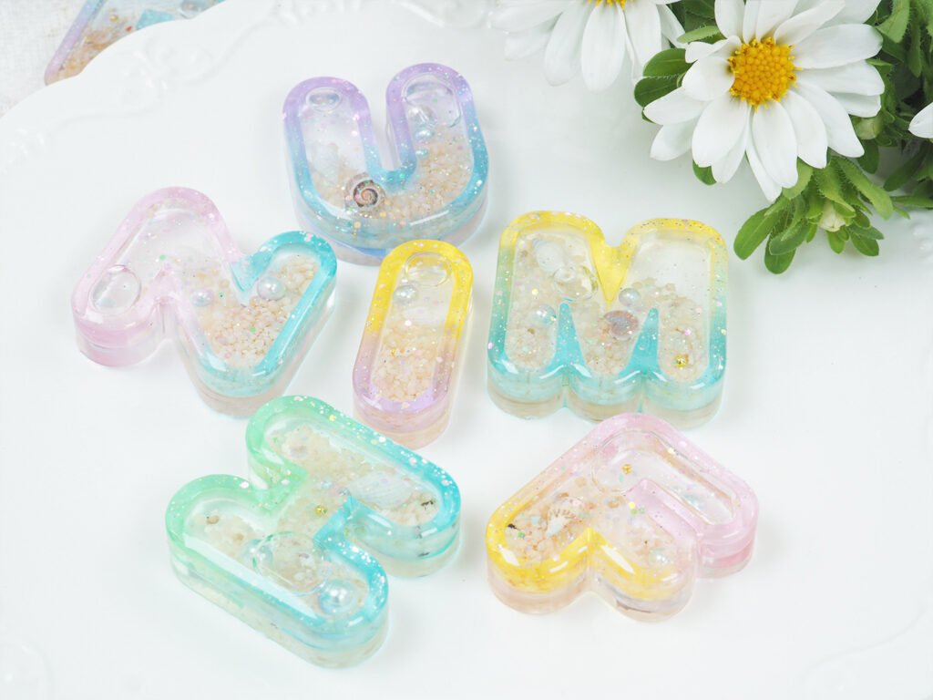 - Ombre Liquid Letters: Using the individual letter shaker set, create a gradient effect by mixing different shades of resin for the letter frame itself.