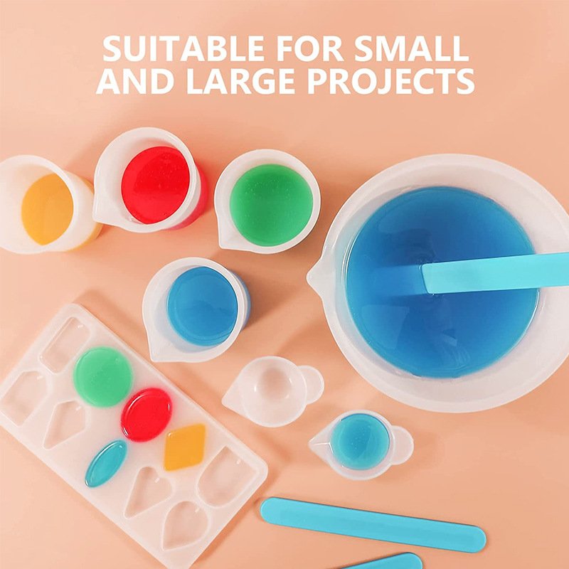Available in: 100ml measuring cup, 250ml measuring cup, 600ml large cup, and full kit with blue stirring stick. Choose the size that fits your projects—or get the complete set to cover all your resin crafting needs.